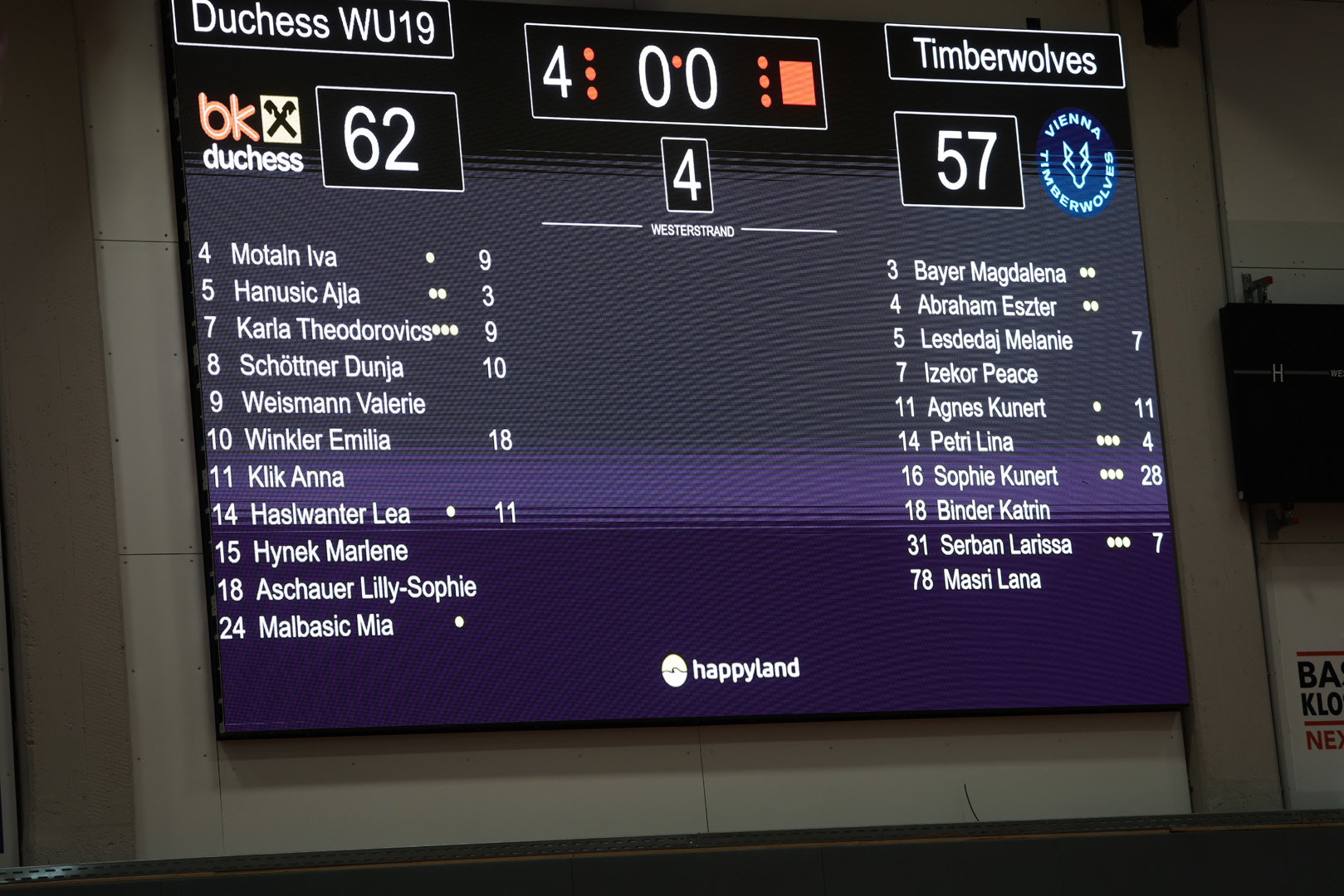 In einem Spiel, das weniger durch Klasse als durch Spannung charakterisiert ist, setzen sich die Klosterneuburger gegen die Wiener mit 62:57 durch.